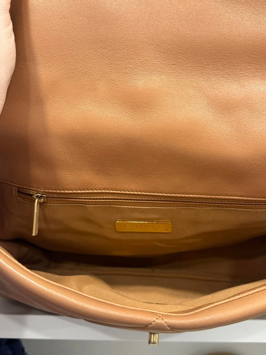 C 19 large Carmel color. Excellent condition with one minor mark on interior as pictured. Full set comes with box dustbag authenticity card and certificate of authenticity. Comes with organizer as well