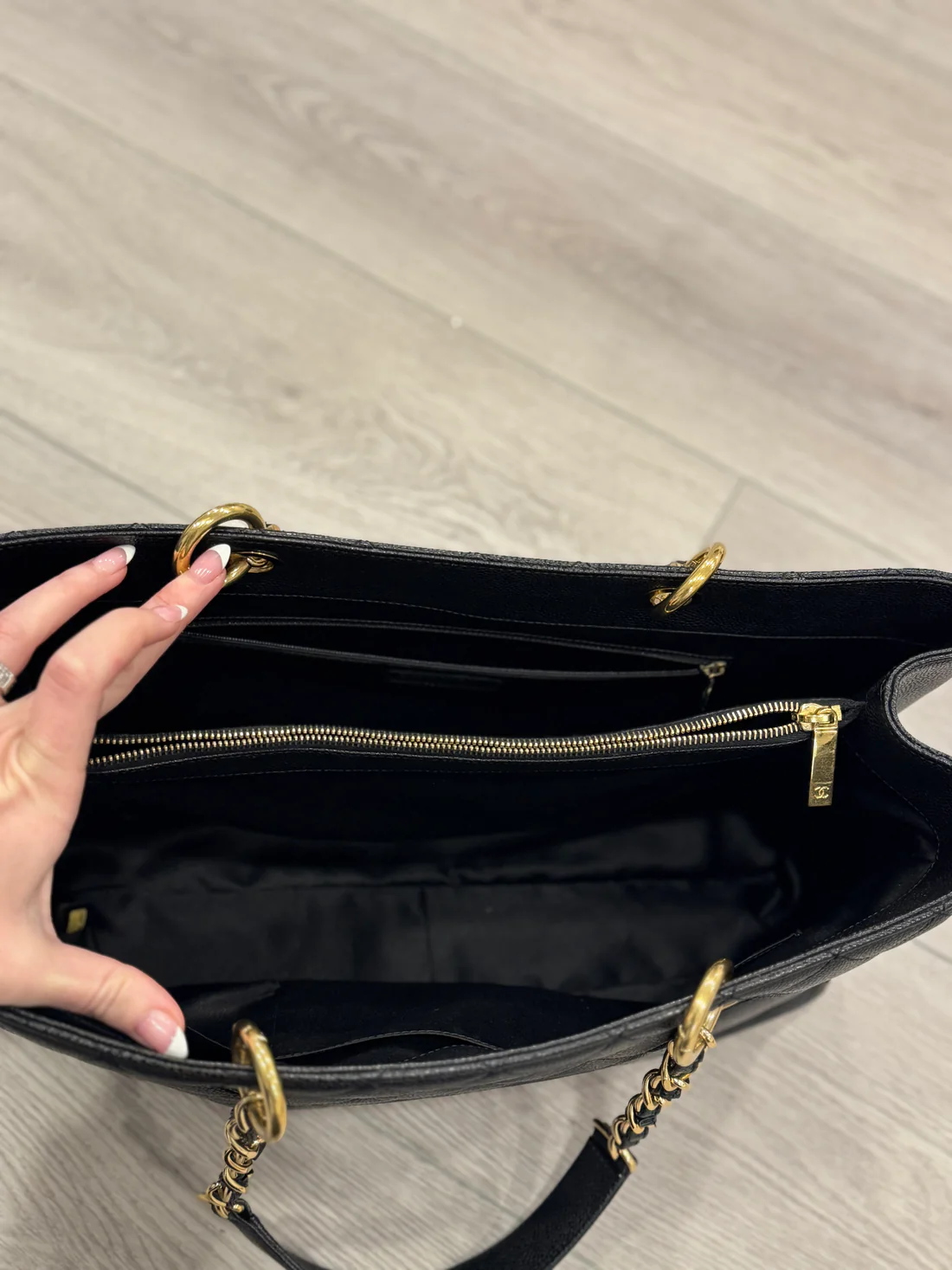 Grand shopper tote quilted caviar xl. Comes with authenticity card and certificate of authenticity. Excellent preloved condition with no notable signs of use. No corner wear 16 x 10 x 5.5