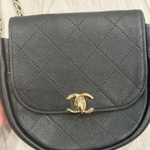 Chanel black calfskin messenger bag with light gold hardware. Excellent condition. Comes with authenticity card