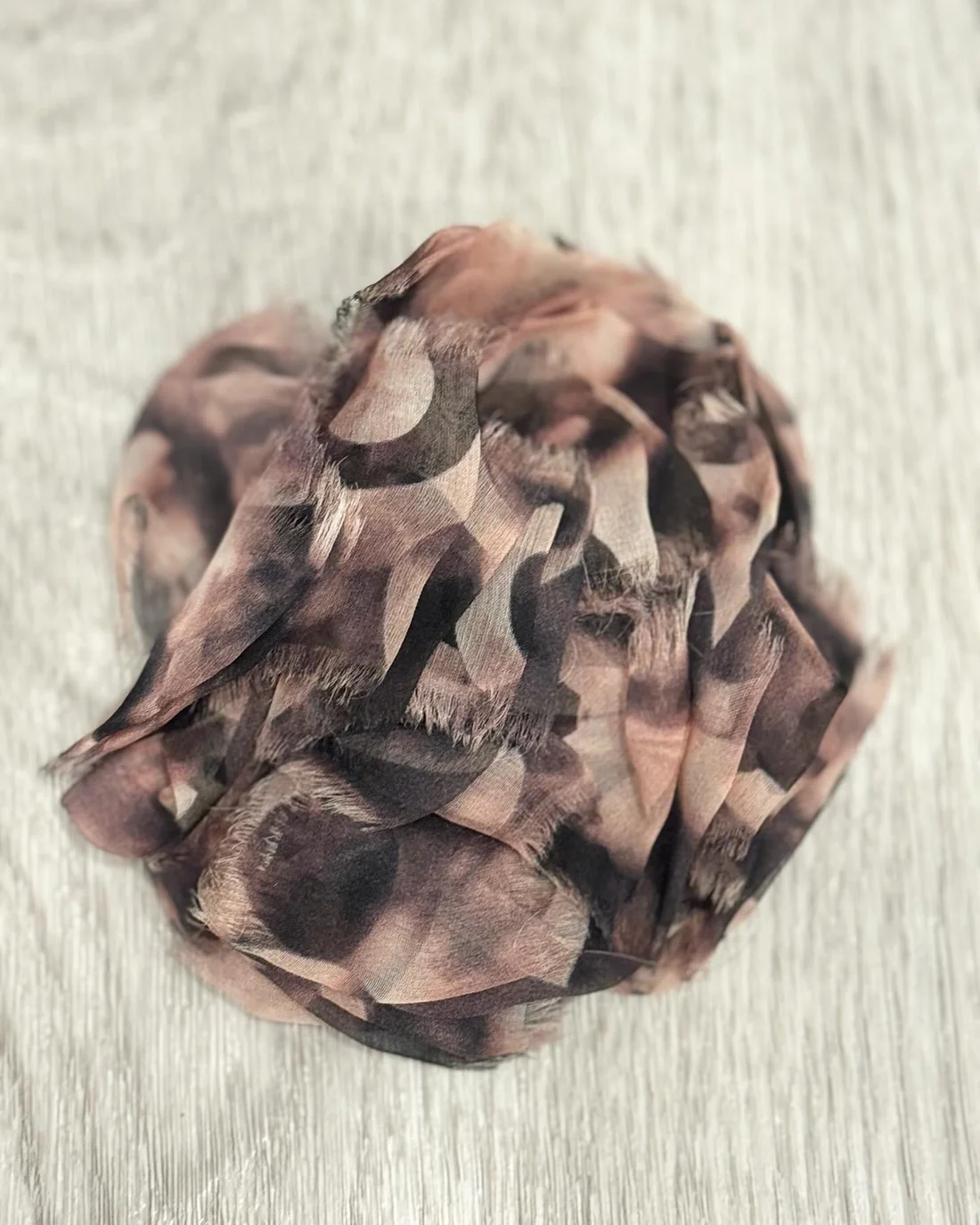 Vintage Chanel camellia brooch in beige pink and brown.