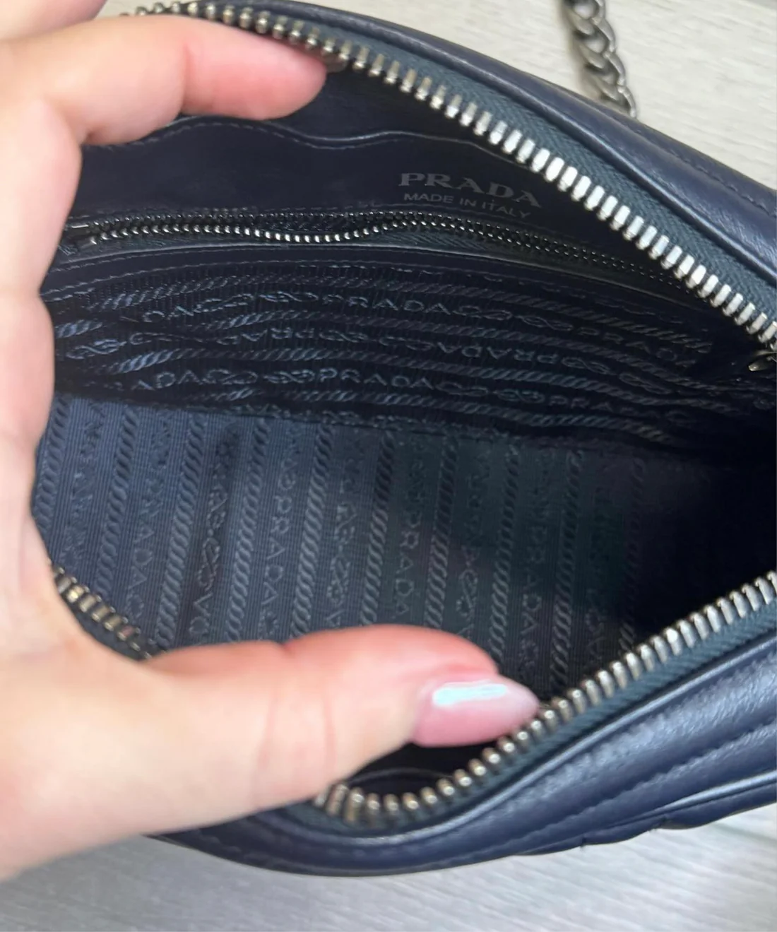 PRADA Soft Calfskin Diagramme Crossbody Bag navy blue  Excellent condition